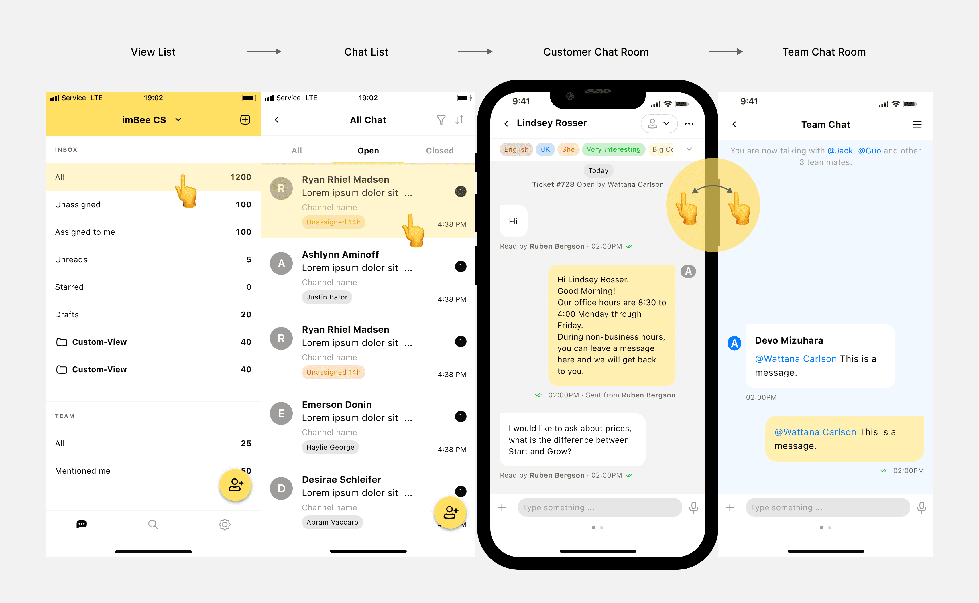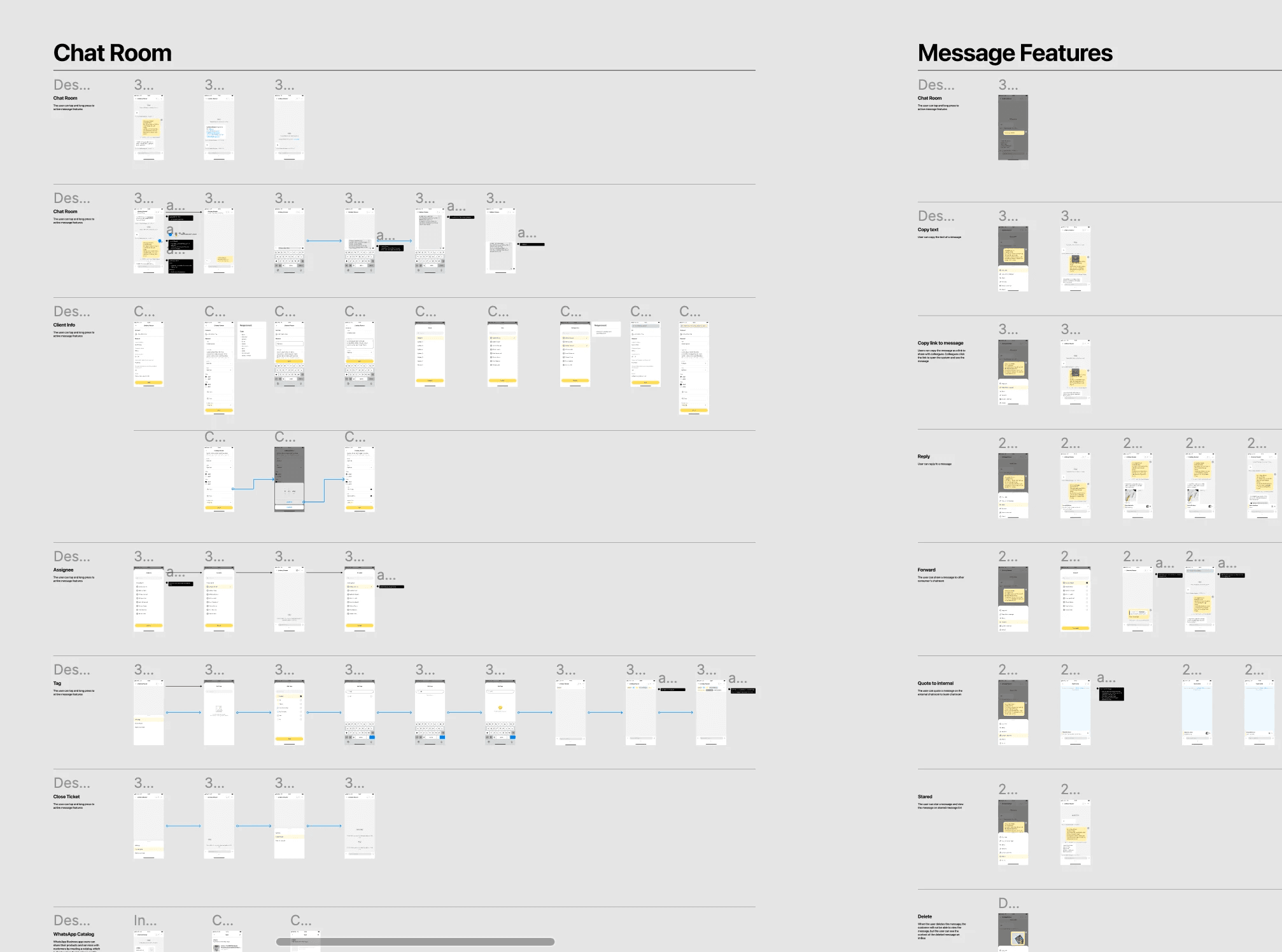 Decision: I restructured the chatroom hierarchy and introduced a progressive navigation pattern to clearly separate customer and team chatrooms.
